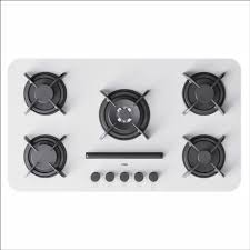 اجاق گاز صفحهای کن مدل پاردیک سفید (Pardyc W)؛ دارای ۵ شعله قدرتمند با پلوپز وسط، صفحه شیشه سکوریت سفید ۸ میلیمتری و شبکه چدنی لعابدار مات
